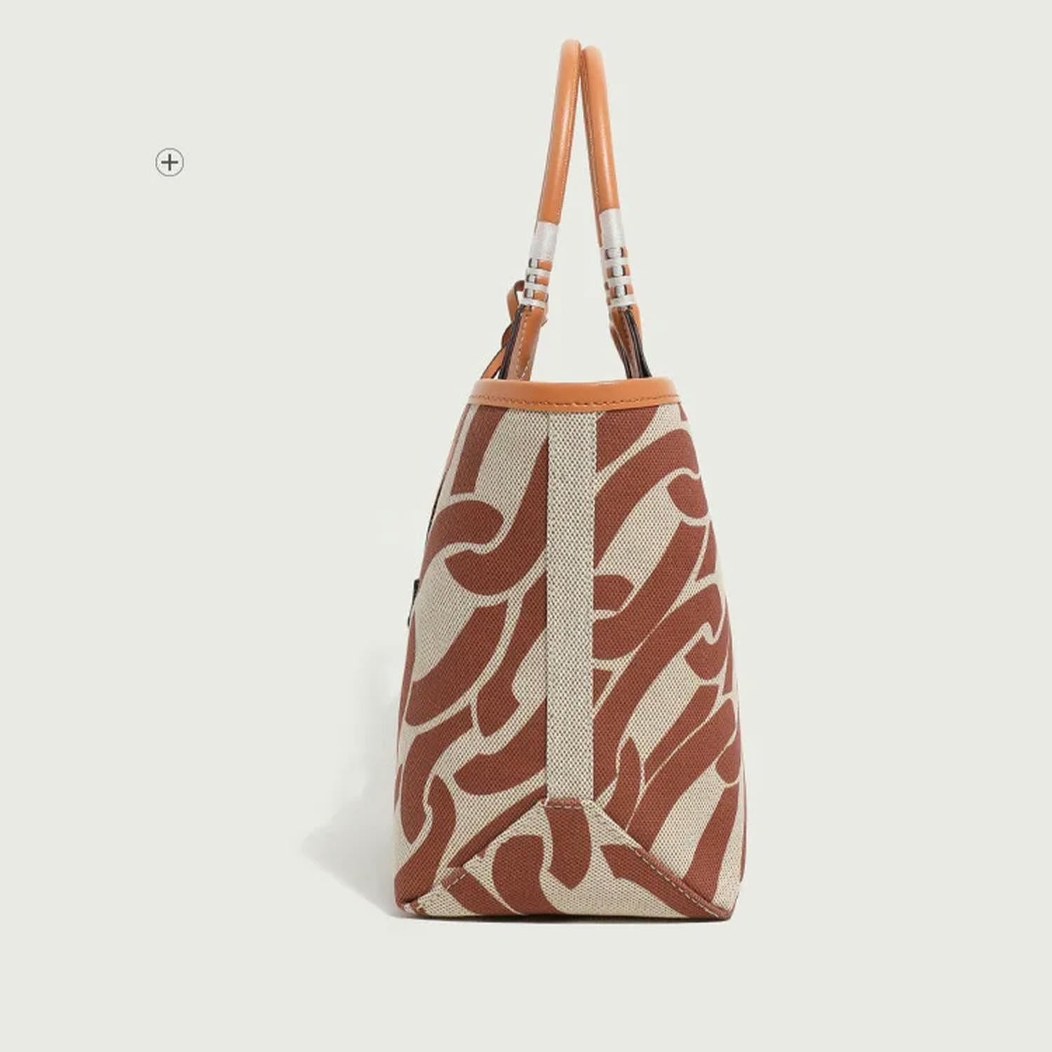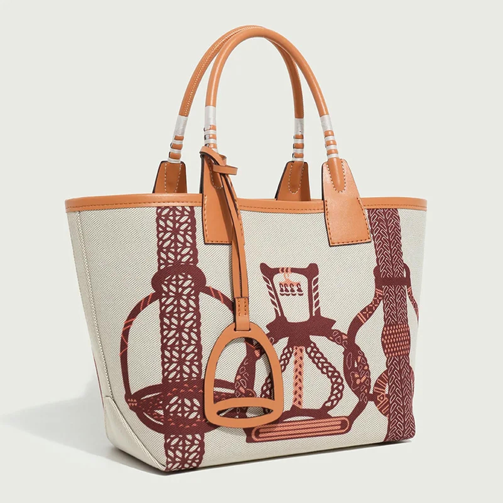 The Celesté Tote Bag blends structured canvas and faux leather trim, delivering durability and refined elegance. Its signature stirrup-style pendant enhances the designer aesthetic, offering both comfort and class. Designed to effortlessly carry all your daily essentials with sophisticated ease.