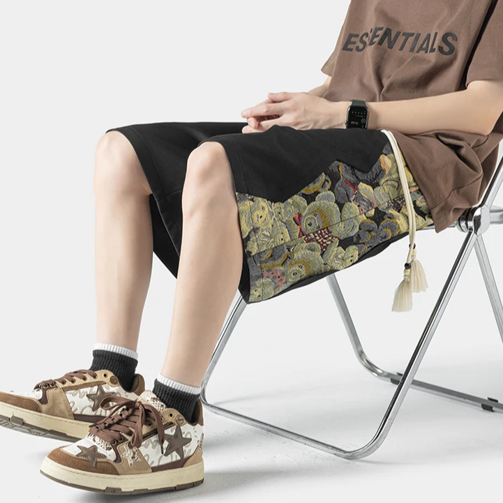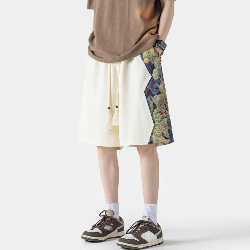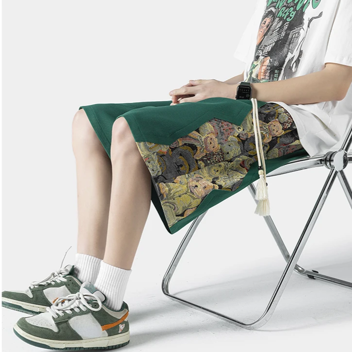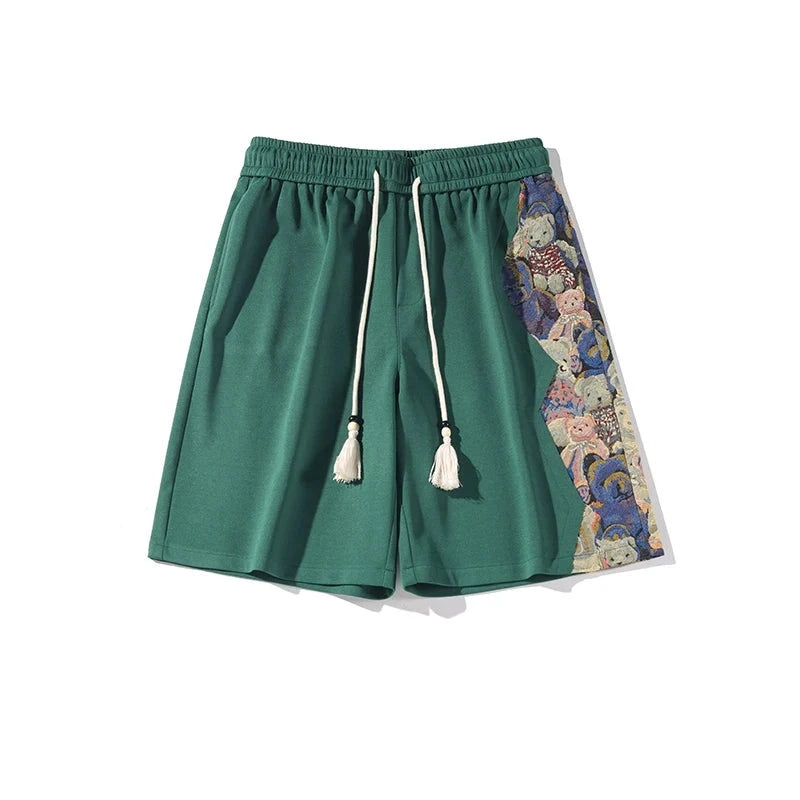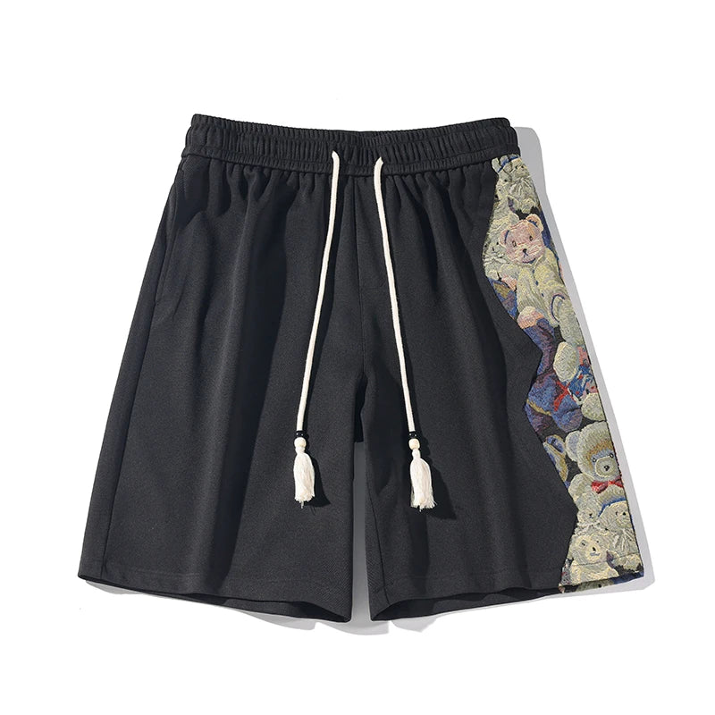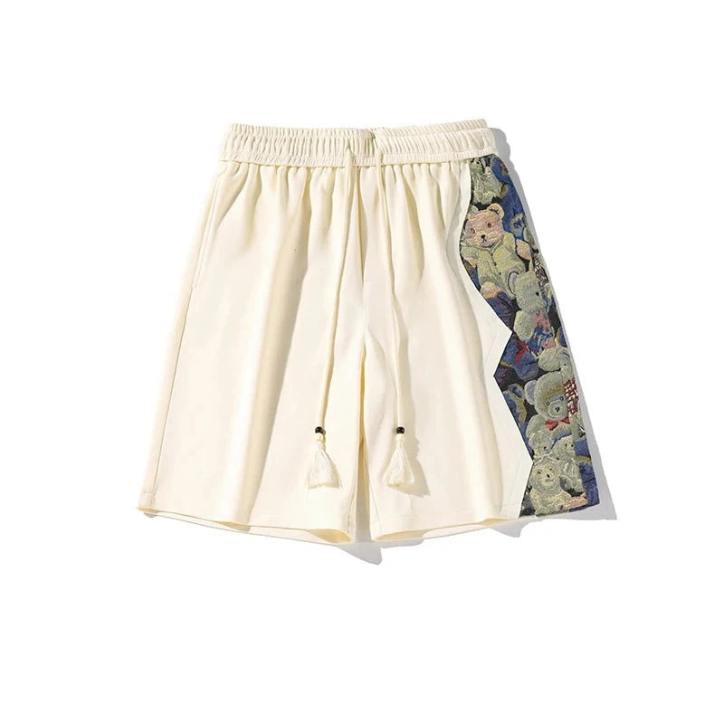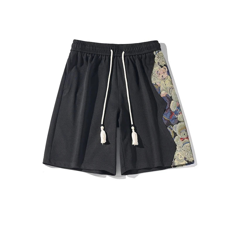 The vintage bear pattern and embroidery design add a touch of uniqueness to these casual drawstring shorts, perfect for the summer beach or a game of basketball. With a relaxed waist and drawstring closure, these shorts offer both fashion and function.